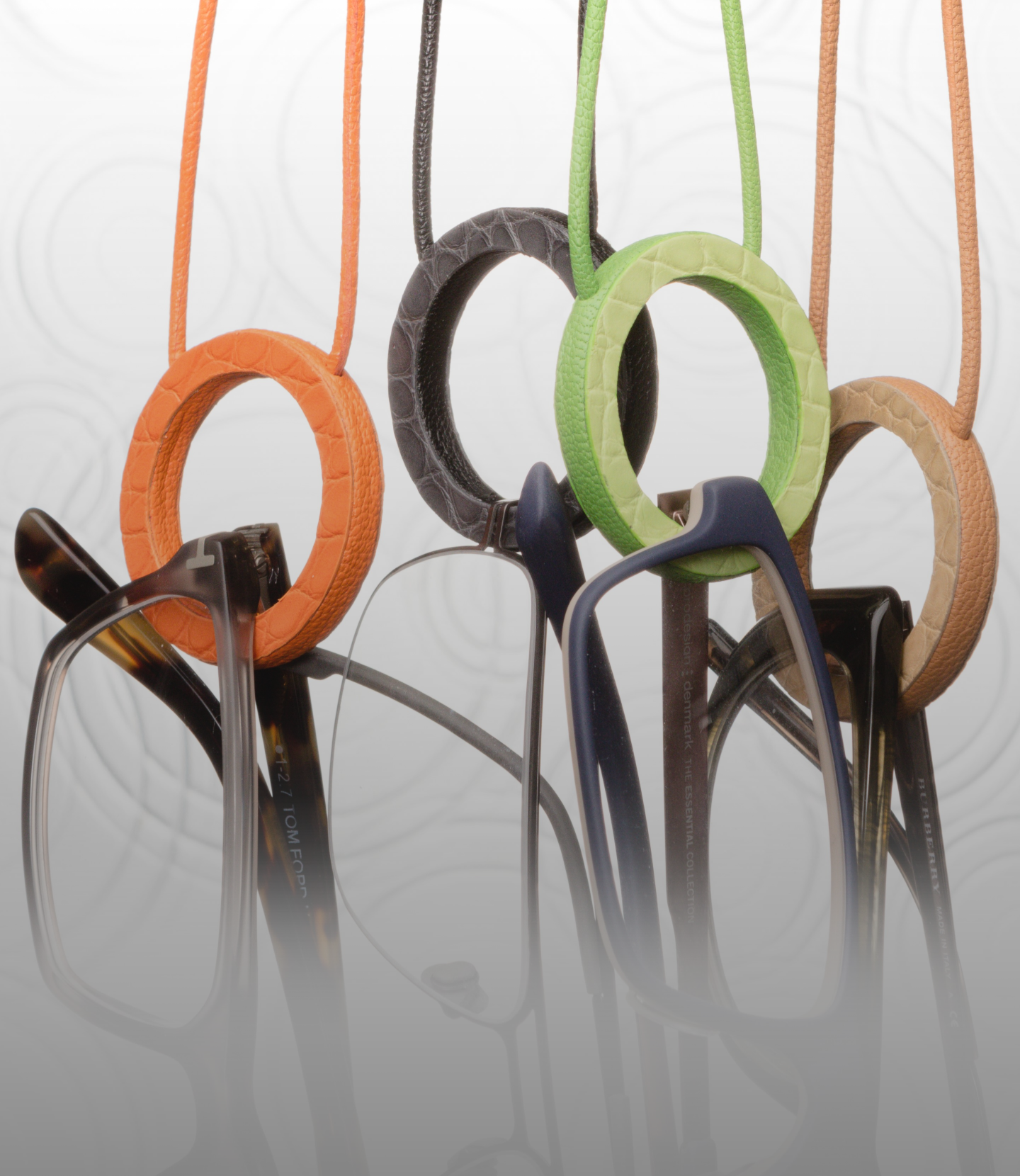 A unisex luxury eyeglass cord holder handcrafted in leather in a kaleidoscope of colours & combinations